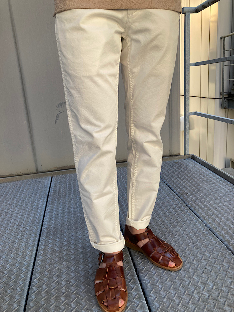 素材感・着心地: ツイル生地を使用しており通年での使用が可能。またストレッチ性も高く履き心地も良い。抗菌加工も施しており、夏場でも安心。製品洗い済み。