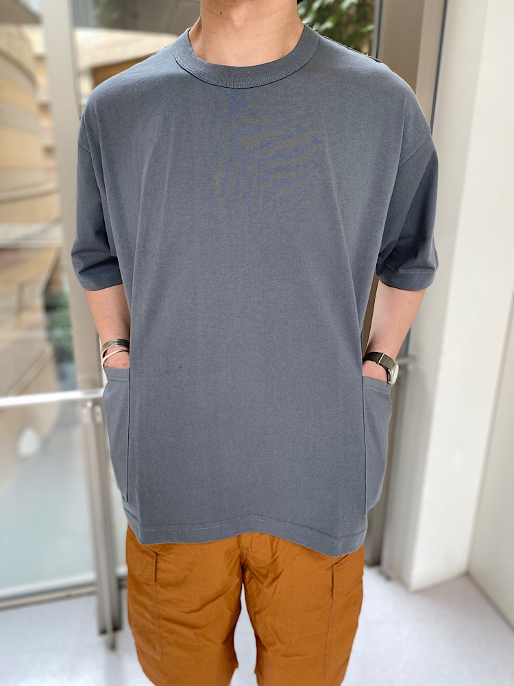 外付けのポケットがアクセントになり、夏場に1枚で着ても様になります。