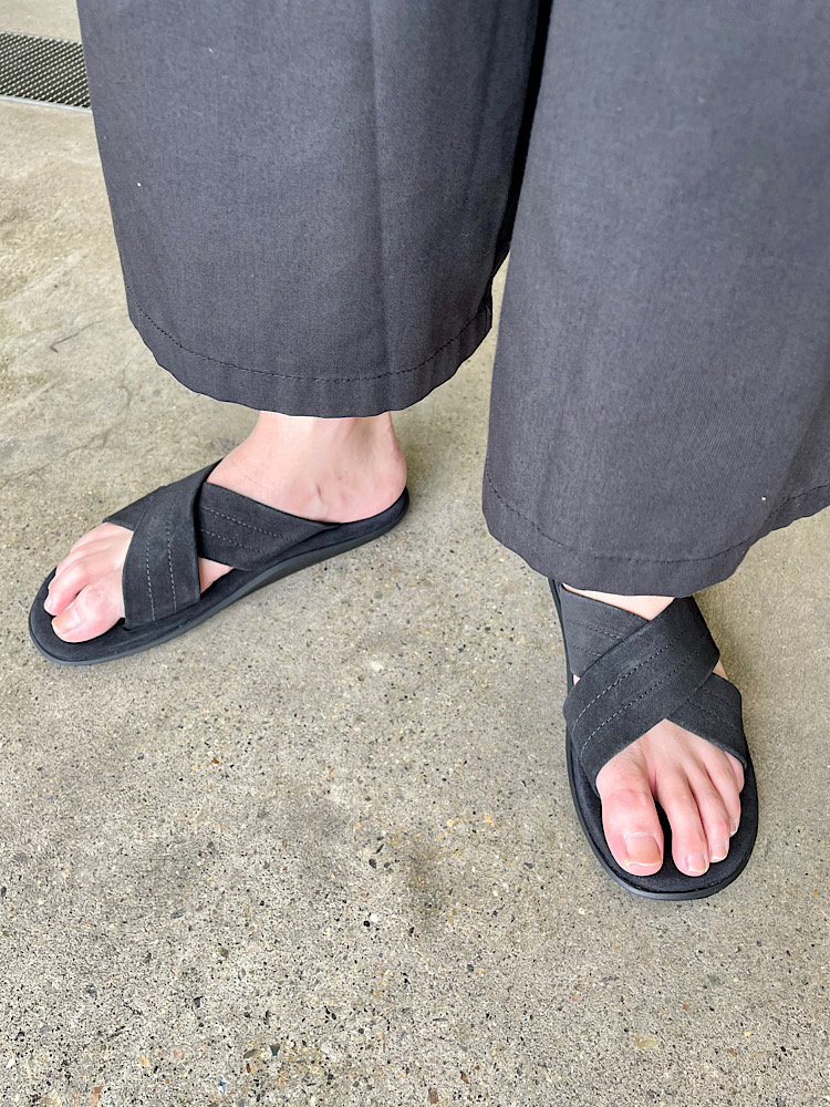 【素材感・着心地】サンダルではありながら、足元を綺麗に飾れます