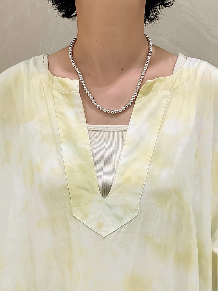素材感:キュプラ混なので、タイダイ柄でもカジュアル過ぎずに着れます。