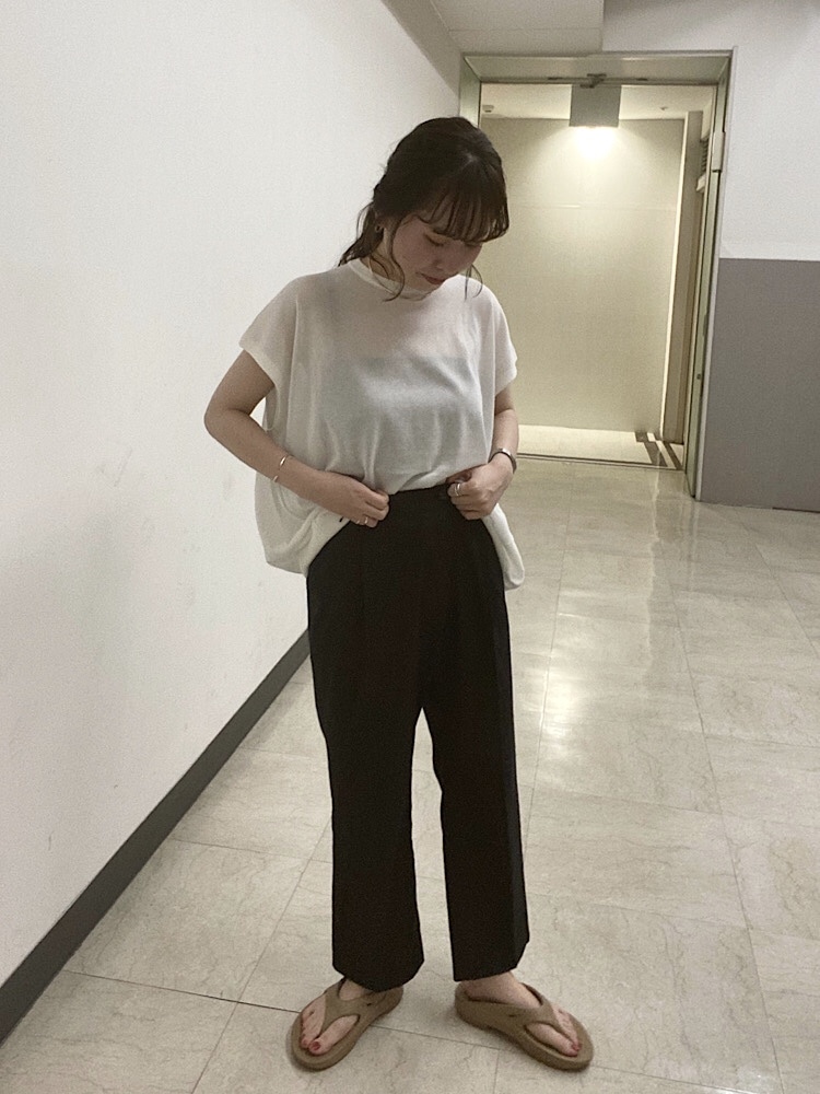素材感・着心地:ニットですが透け感があるので、真夏でもさらっと着用して頂けます。