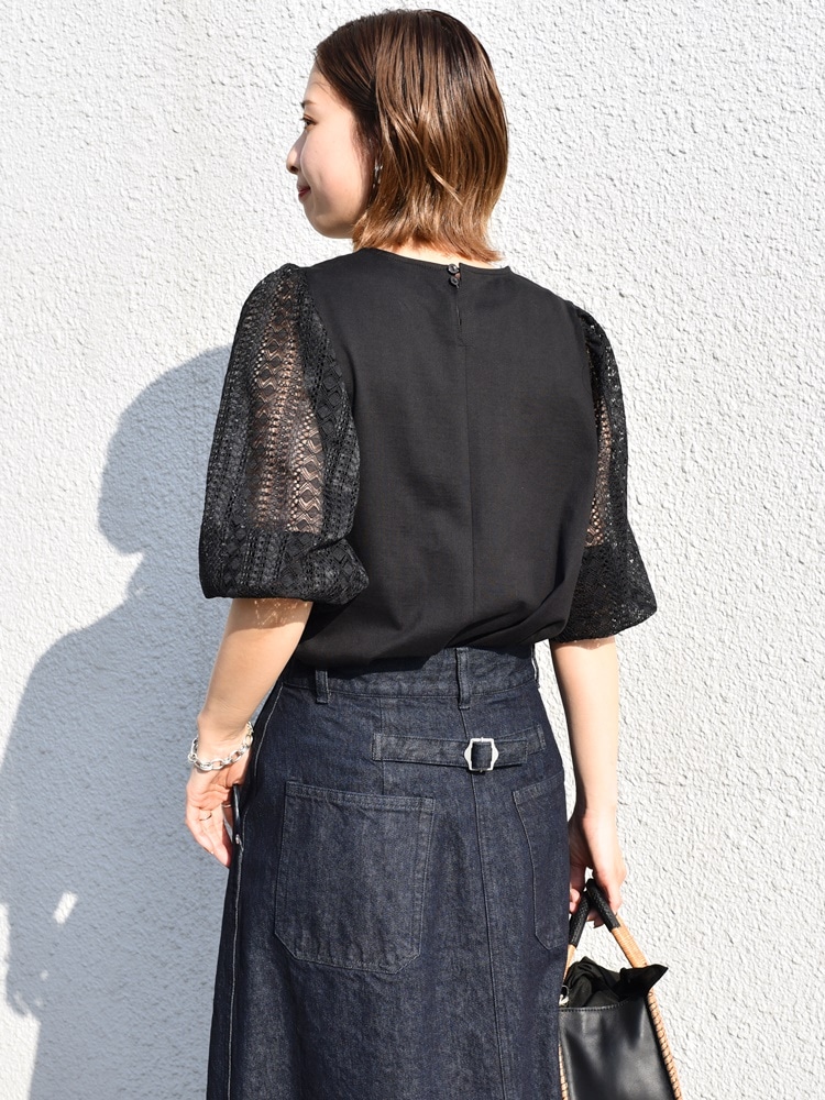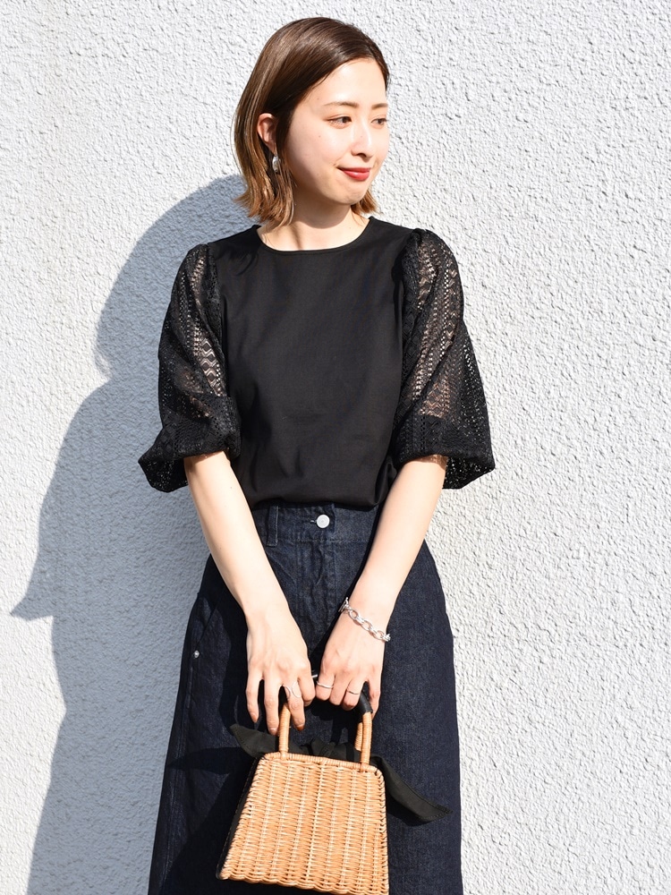 着心地:袖口はゴム仕様ですが窮屈感はなく、ふんわりとしたボリューム袖に◎甘くなりすぎないレースのデザインなので、デイリーに取り入れやすいです。