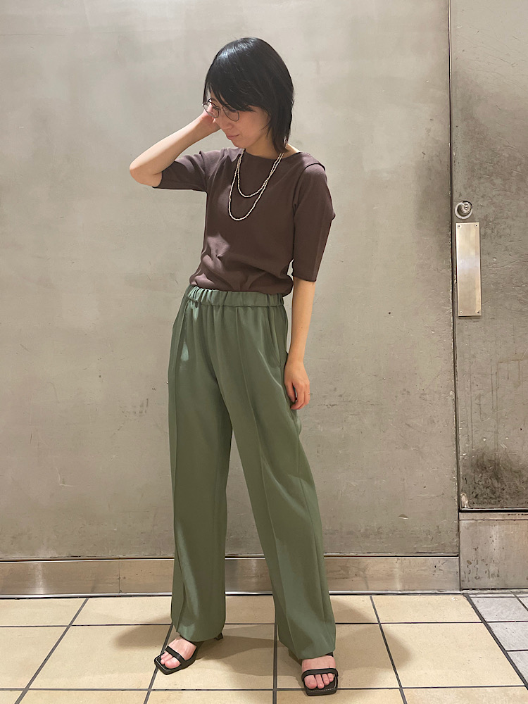 素材感・着心地:光沢がある生地なので、あわせるトップスによって雰囲気を変えられます。