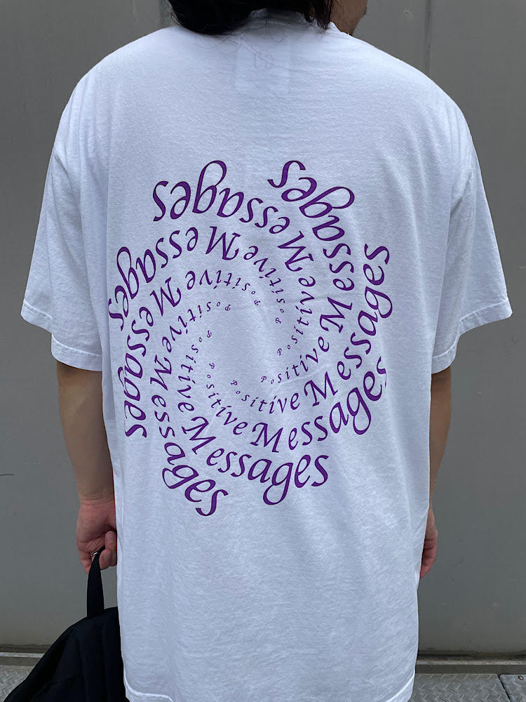 素材感・着心地:程よい厚さのコットン100%。ゆったりしているので楽に着用出来ます。配色のよいロゴでメッセージ性のあるグラフィックが印象的です。