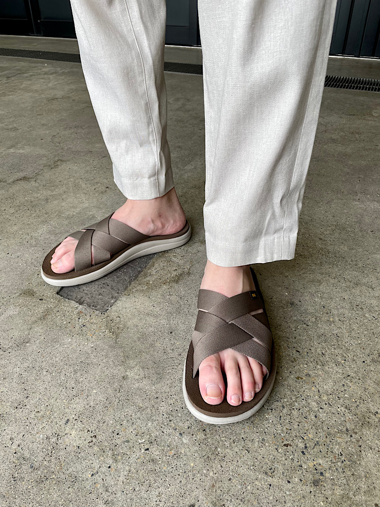 【素材感・着心地】リネンでストレッチのため履き心地のよいパンツ