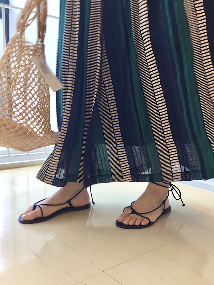 着丈は長すぎる事なくフラットサンダルにも合わせやすい丈感です。