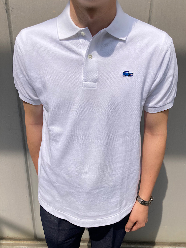 素材感・着心地: コットン100%の素材で、後ろの裾が長いドロップテール仕様でリラックス感があり、フルレングスのパンツからショートパンツでの合わせでも合わせやすい。また胸元の青ワニがアクセントに。