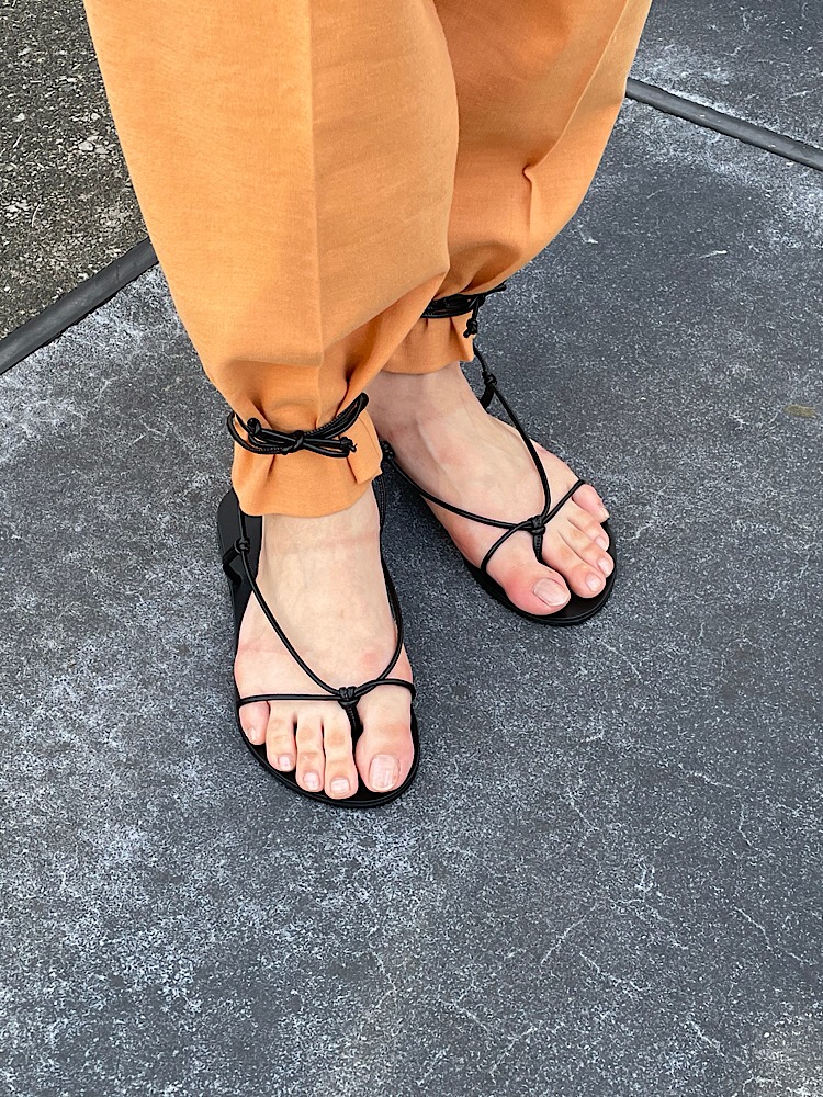 【素材感・着心地】シャリっとした素材ですが柔らかな履き心地です。