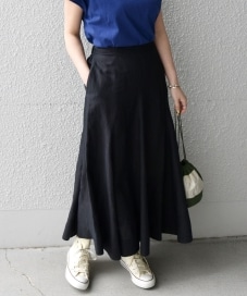 〔38〕SHIPS any:〈手洗い可能〉リネン ミックス ランダム フレア スカート