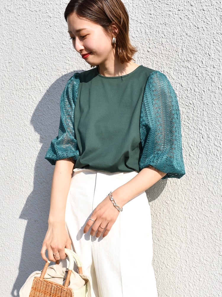 着心地:袖口はゴム仕様ですが窮屈感はなく、ふんわりとしたボリューム袖に◎甘くなりすぎないレースのデザインなので、デイリーに取り入れやすいです。