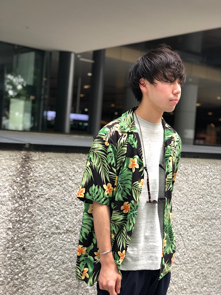 Adsumのパンツとオリジナルのアロハシャツを合わせました