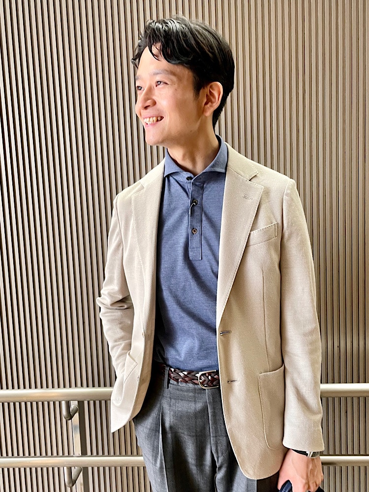 Sサイズでジャストで着用できます。通気性のある麻素材で夏場も快適です。触れるとひやっとした冷感があり気持ち良いです。