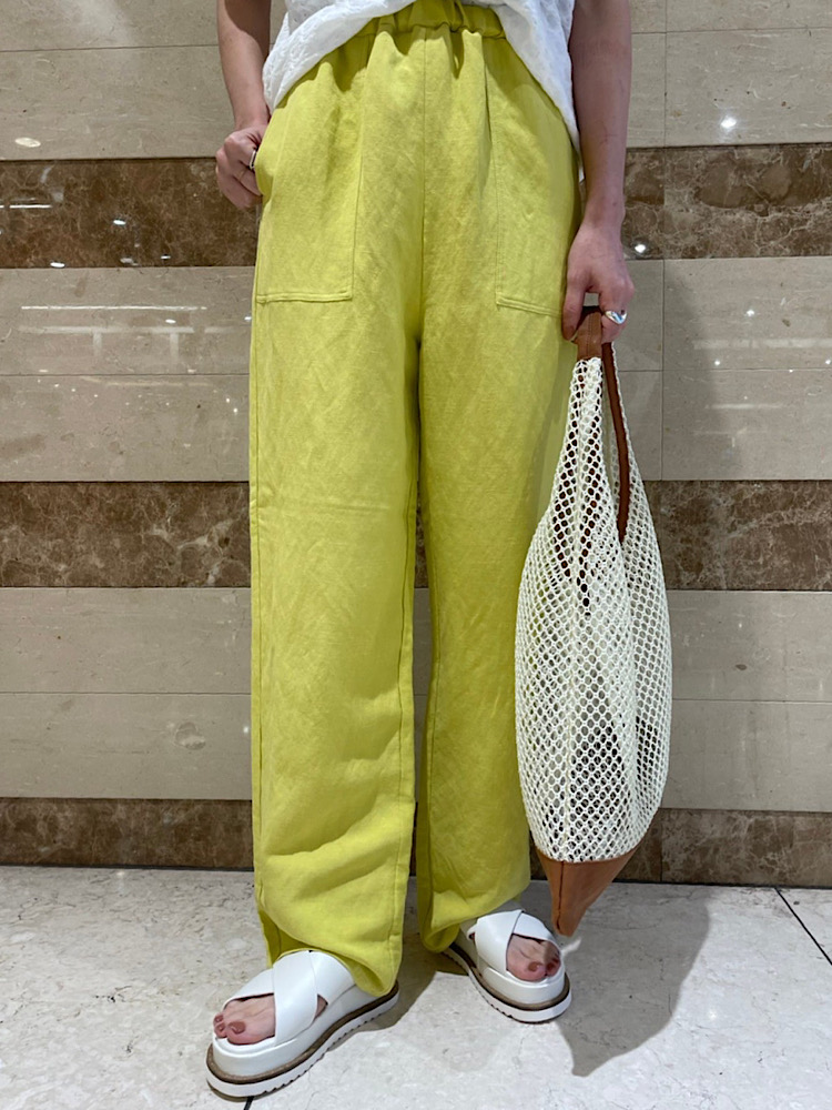 サイズ感:全体的にゆとりがありますが、ストンと落ちるシルエットでスッキリ見え。ウエストはゴムと紐なのでトップスに合わせて調節可能です。
