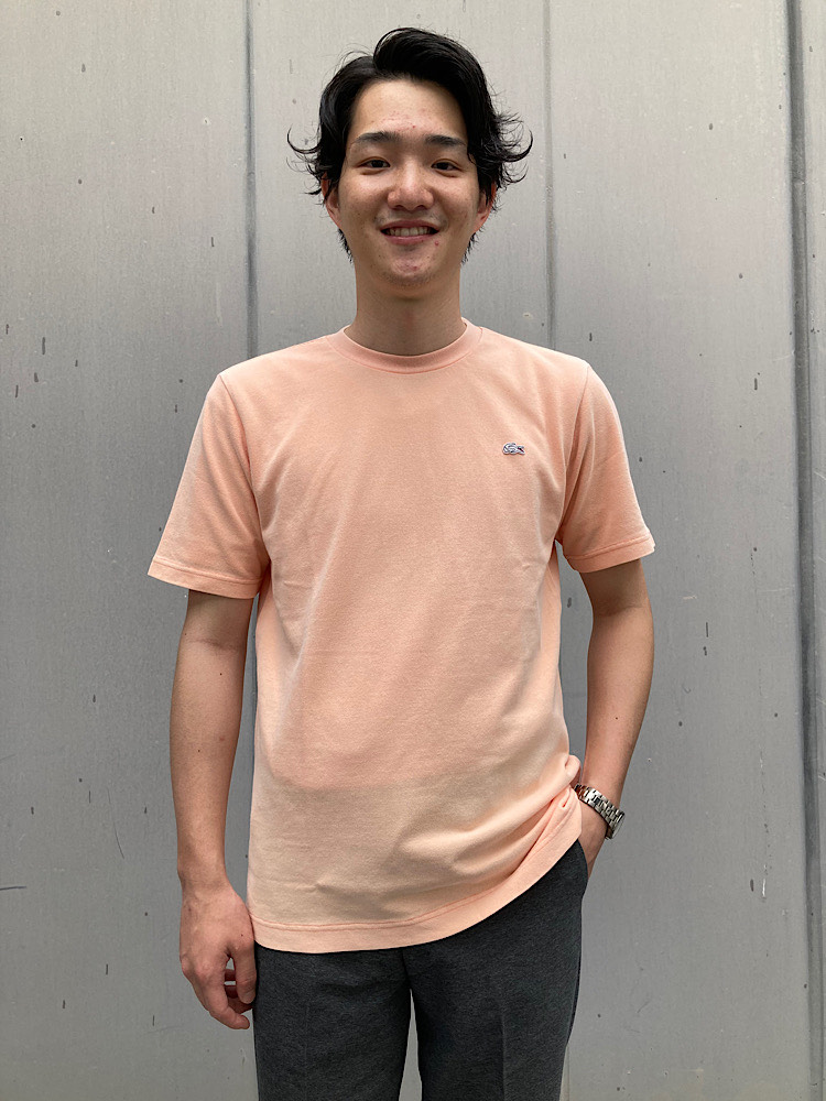 素材感・着心地: 鹿の子生地になっており、肌離れもよく、クルーネック仕様なのでポロシャツとは違った雰囲気になる。一枚での着用やジャケットのインナーとしての着用もでき、この夏のアクセントに最適。