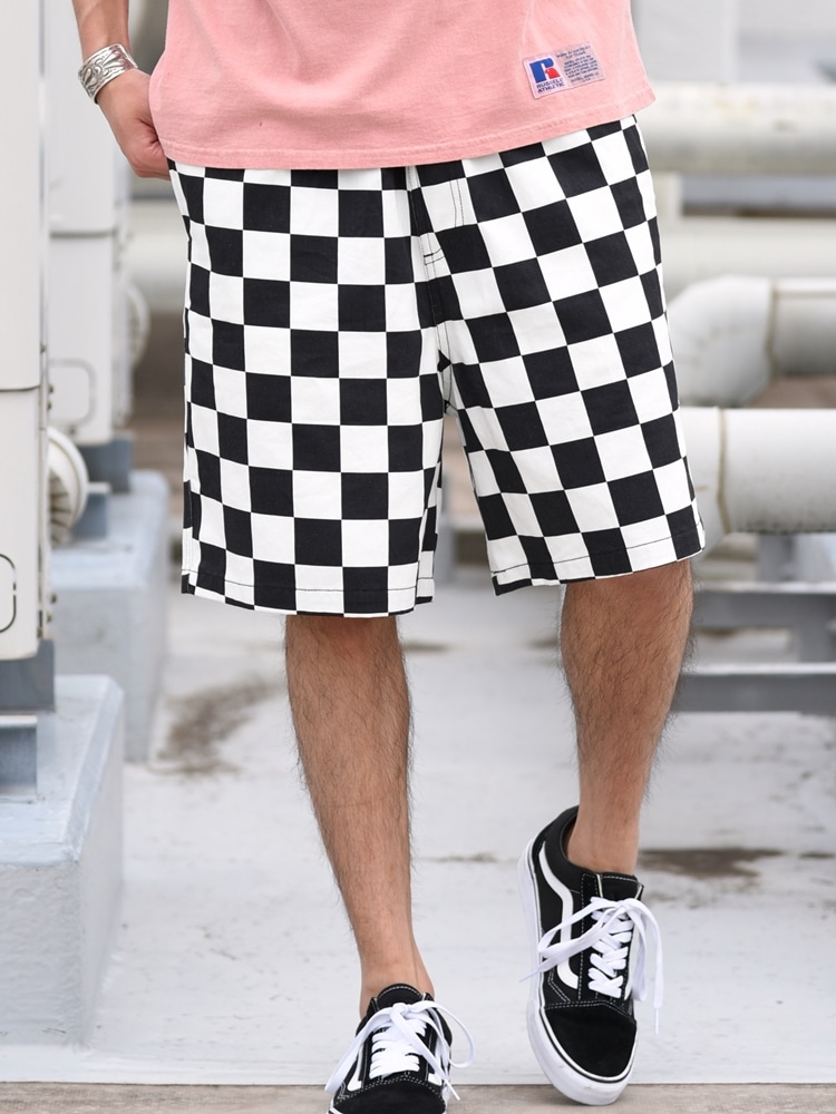 チェッカーフラッグのショーツがポイントのストリートコーデ