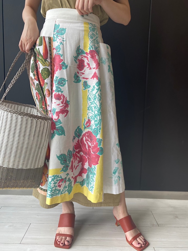 ・ビンテージぽい風合いとユニークなデザインが目を引くおしゃれなスカート!