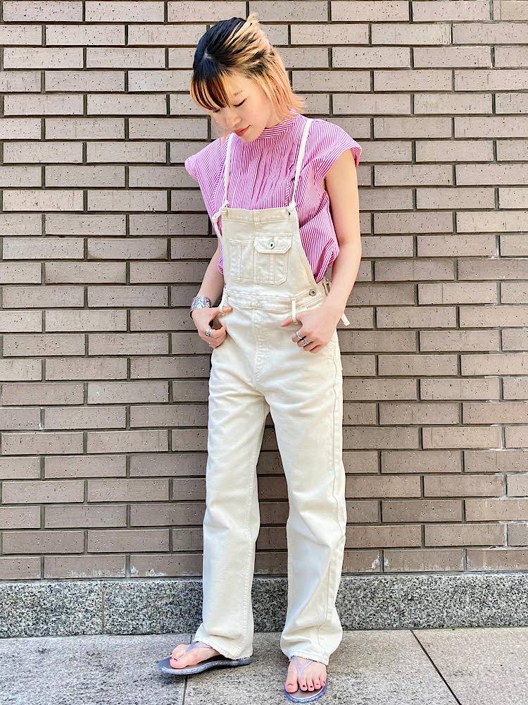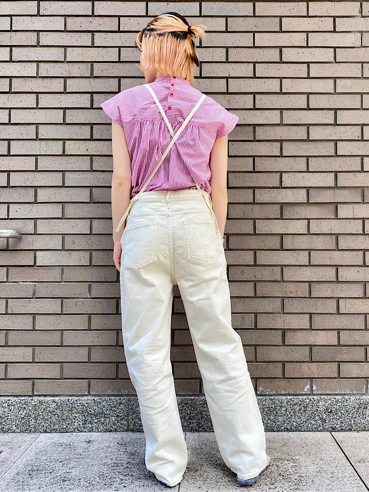 着丈はやや長めな印象ですがサスペンダーで調節可能で