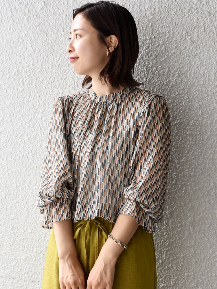 レトロ柄のブラウスには大人カラーのパンツを♪