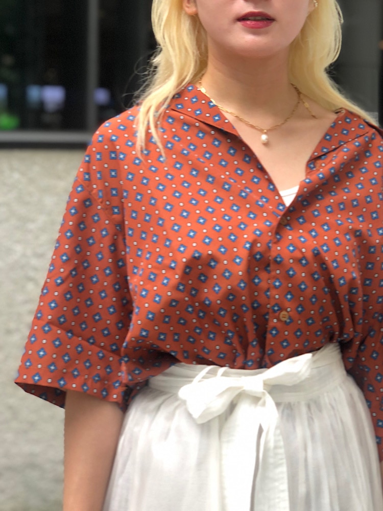 メンズのトップスを、レディース仕様でコーディネートを組んでみました。