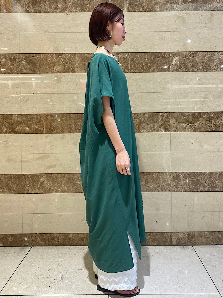 素材感・着心地:シャリ感のあるコットンで肌触りよく、薄手なので透け感あり。たっぷり生地を使ってますが重くなく涼しく着て頂けます。
