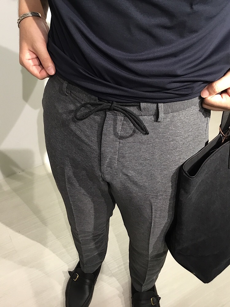 着心地:ストレッチが効いており動きやすい。また、腰回りが紐の為、長時間座るデスクワークでも楽に履ける。