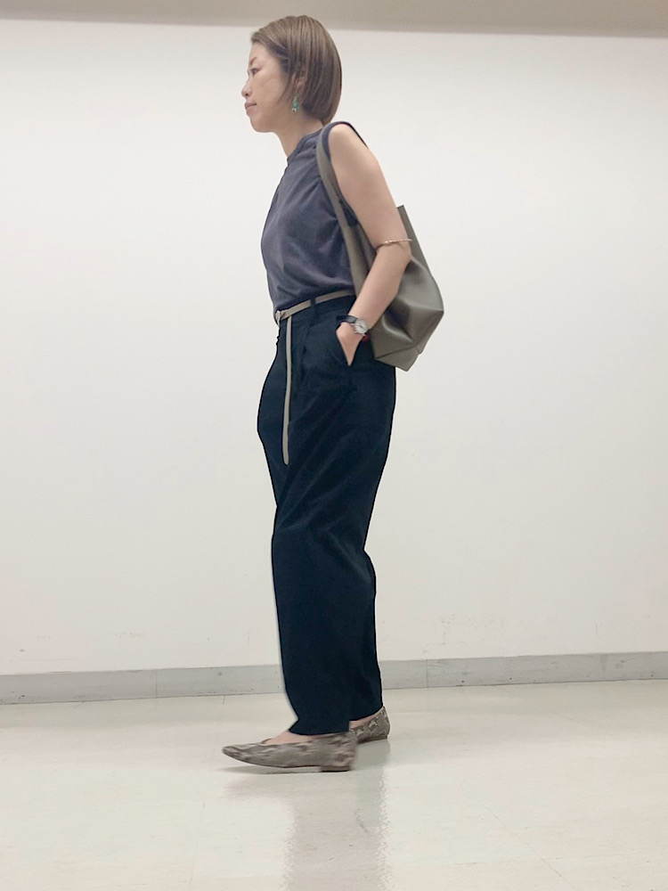 【素材感・着心地】ストレッチがきいており、動きやすい。ボタンを留めて、テーパードにしても締め付けない。さらっとした綿で、気温の高い季節におすすめ。