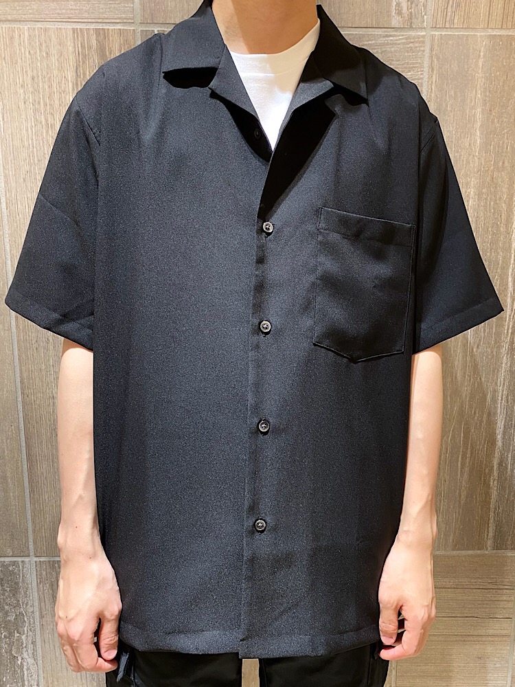 【素材感・着心地】ポリエステル素材ですが、麻のようなドライタッチなシャツです。身幅はありますが、着丈はそこまで長くないのでサイズを上げて頂いても良いと思います。