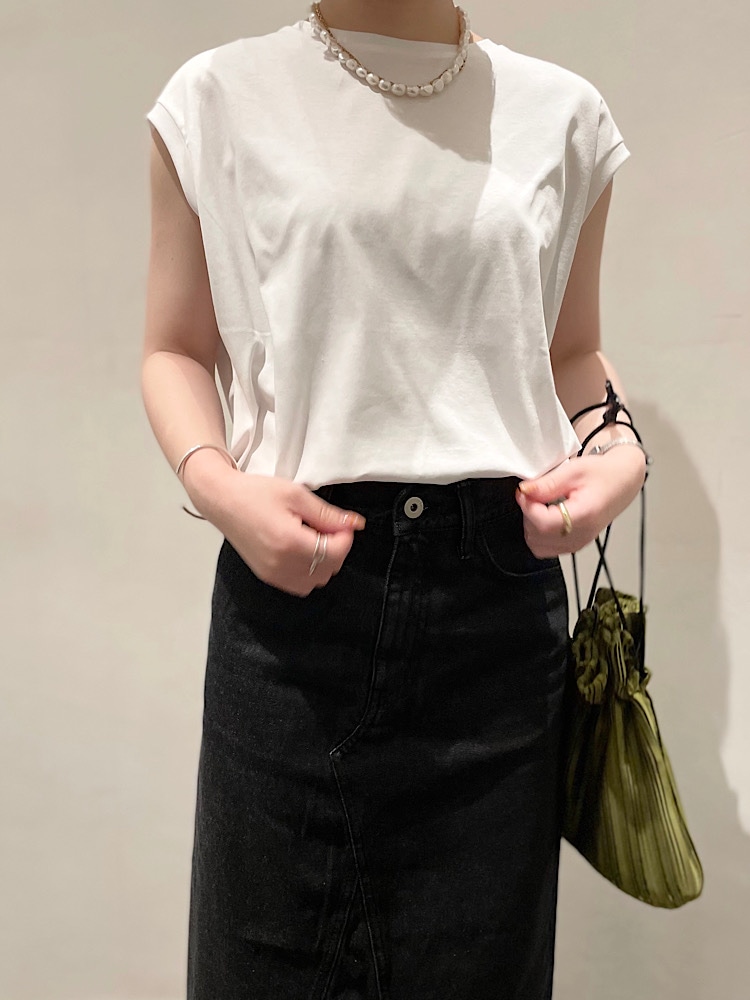 商品紹介:肌離れがよくさらっと着ていただけます。生地に少し光沢感があるのでがジュアルすぎずキレイ目なボトムとも相性が良いです。