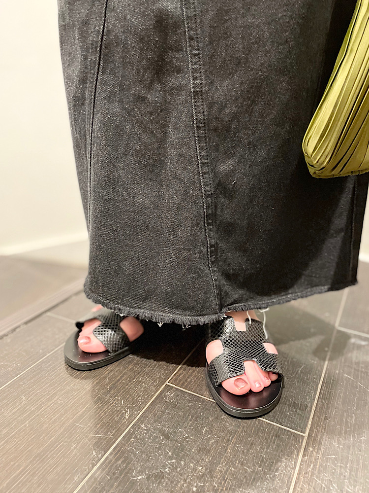 サイズ感:くるぶしくらいの丈感でタイト過ぎないシルエットです。