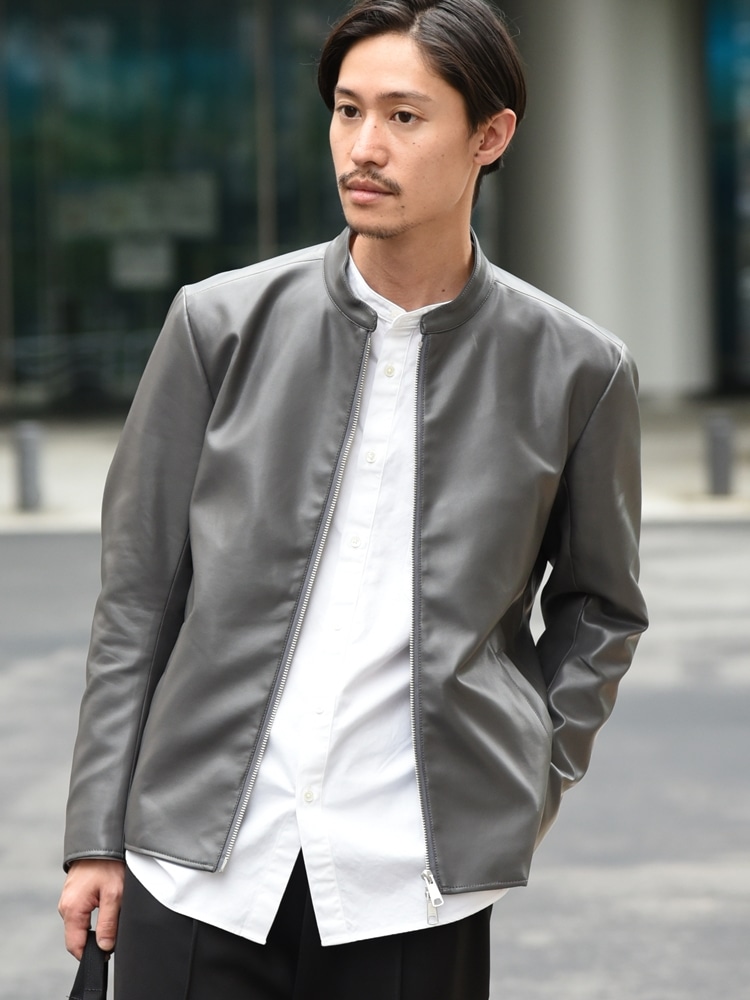 人気のシンセティックレザー(合成皮革)ライダースジャケットから、新色のグレーが登場。