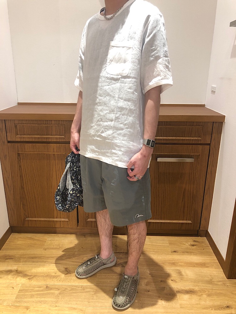 メッシュ×麻×ハーフパンツの夏でも涼しいオシャレコーディネート