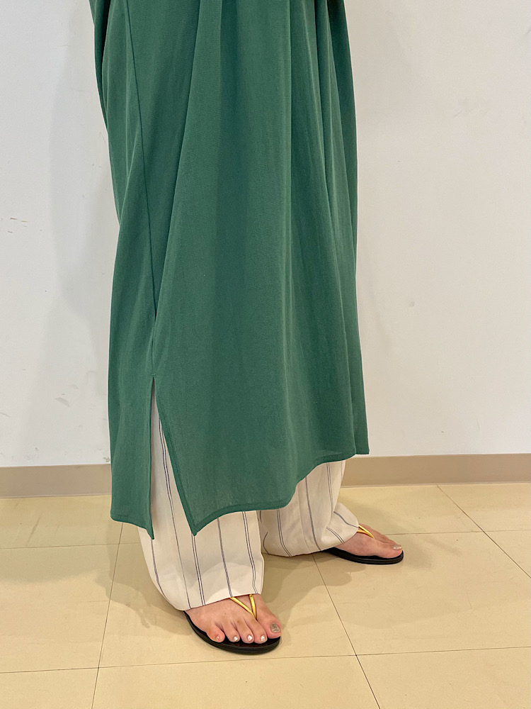 レーヨン、麻でさらっと涼しい履き心地なのでレイヤードスタイルにもおすすめです。