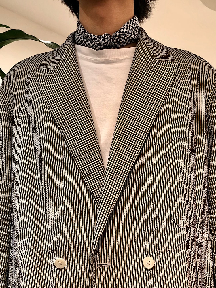 ジャケットと共布のサッカー地。セットアップで着れる。