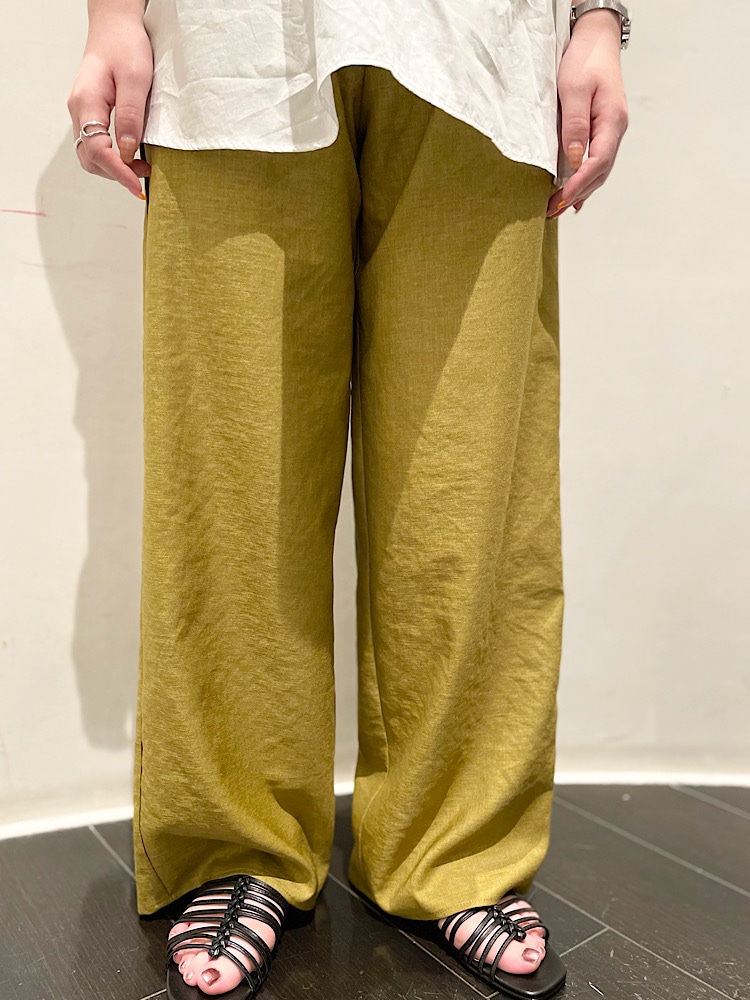 商品紹介:程よい光沢感があるので上がシンプルでもオシャレに見えるアイテムです。生地感も軽く肌離れがいいので夏場でも涼しく履いていただけます。ポリエステル100%なのでシワにもなりにくくお家でのお手入れも簡単です。