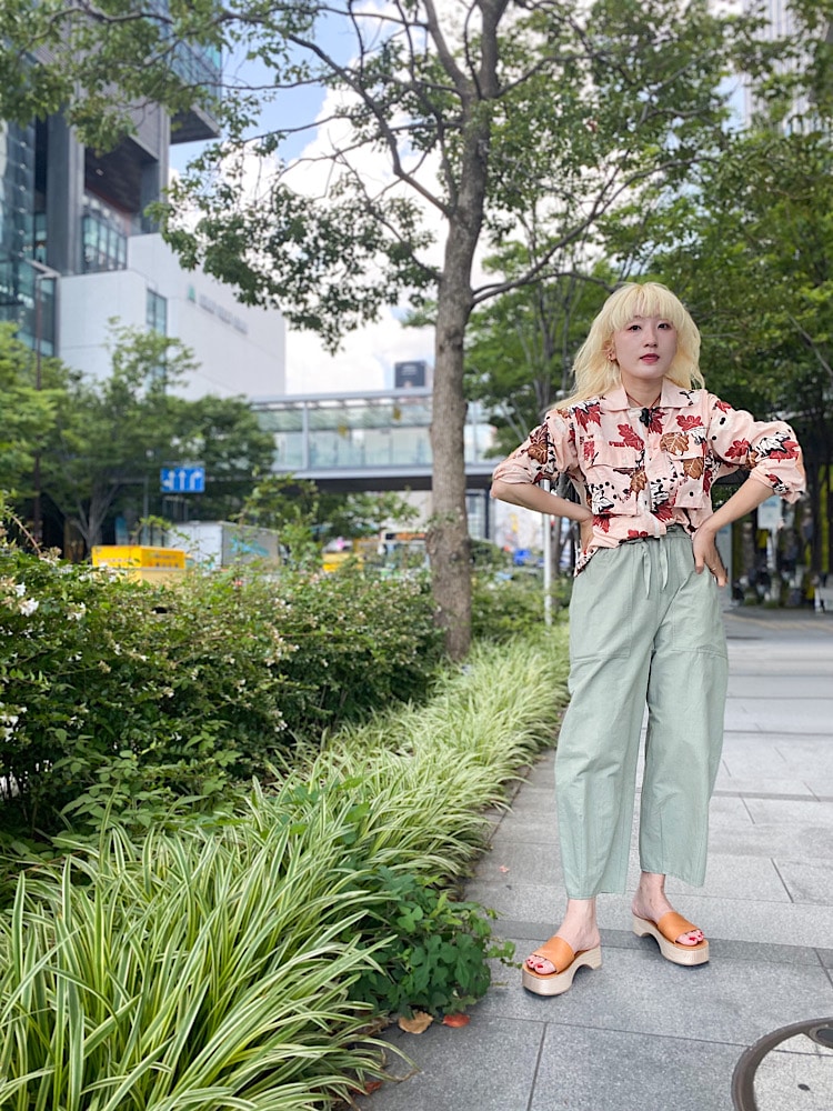 着こなしポイント:少しボリュームのあるパンツなので、トップスをインして頂くとすっきり着こなせます
