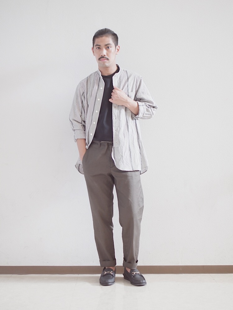 イージーパンツなので、ゆるく見えるが割と細くベーシック寄りのサイズ感。