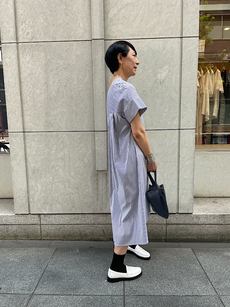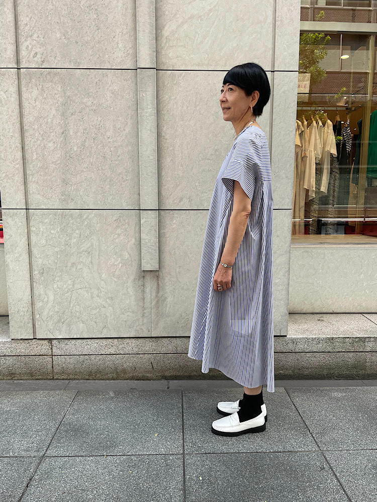 【素材感・着心地】さらっとしたコットン&ナイロン素材。通気性良くウォシャブル。着丈111p。166pの私でヒザ下15p程。上品な着丈。