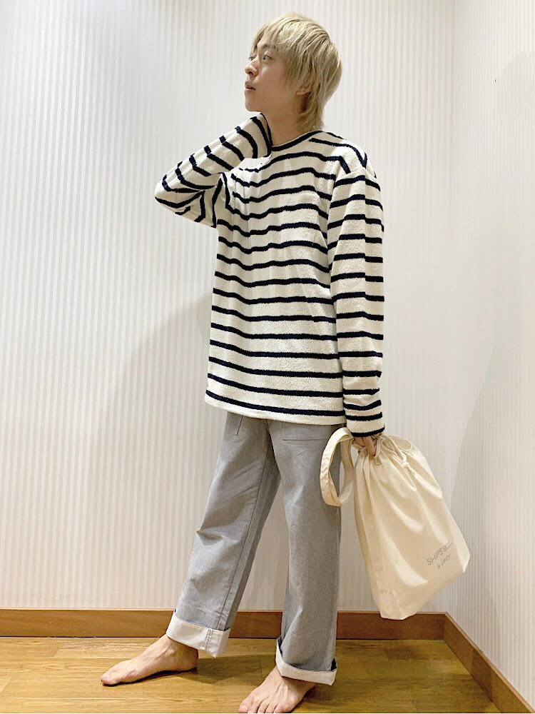 サイトモデルの様にセットアップでのご着用ももちろんおすすめですが、上下異なる素材感であわせていただくのが個人的に一押しです。