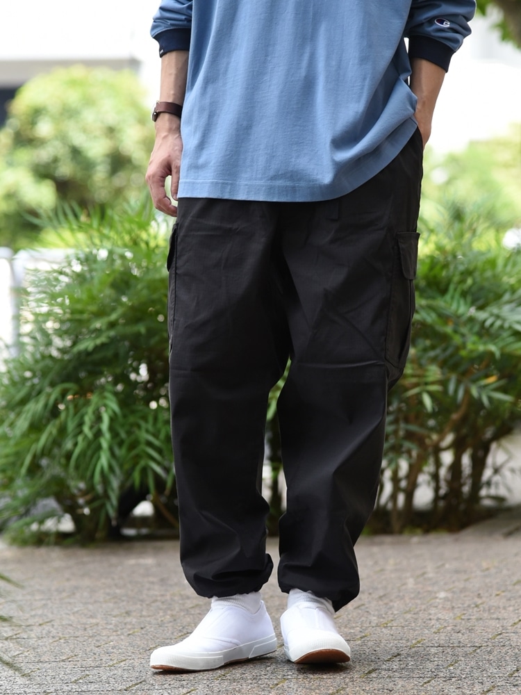 老舗ブランドHINSONとコラボしたカーゴパンツは、裾のドローコードでシルエットの変化を楽しめます!