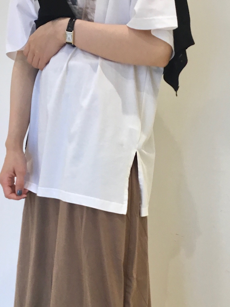 ゆったりとしたシルエットでスリットも入ったデザインなのでインせずに着ても可愛いです。