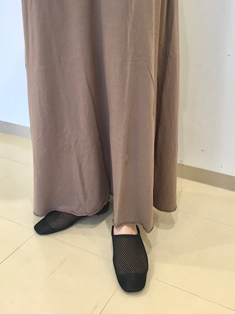 体のラインが出過ぎずに、落ち感のあるフレアなシルエットなので安心感があります。