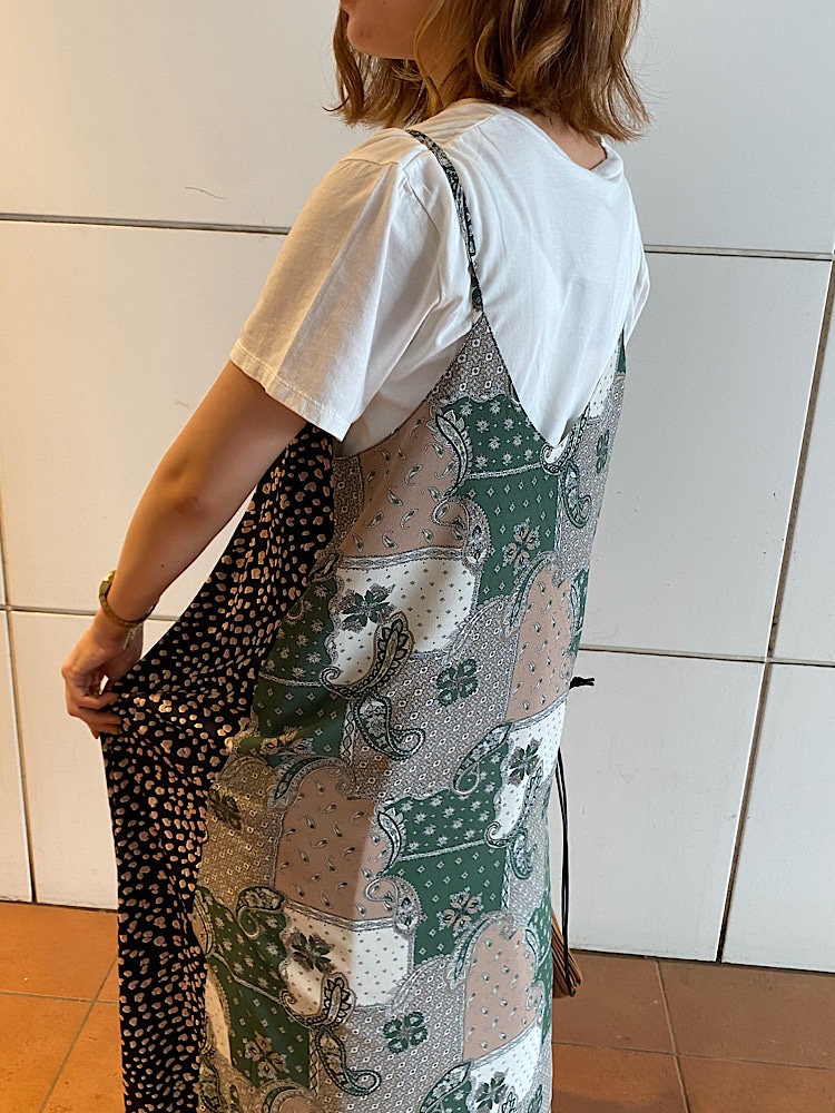 キャミワンピースをデニムでレイヤードし、カジュアルにまとめました。