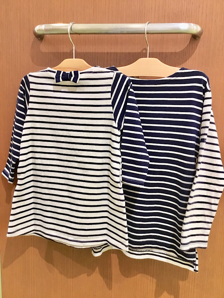 お揃いで着れるボーダーシリーズ! ガールズのワンピースにはバックにかわいいリボン付きです。