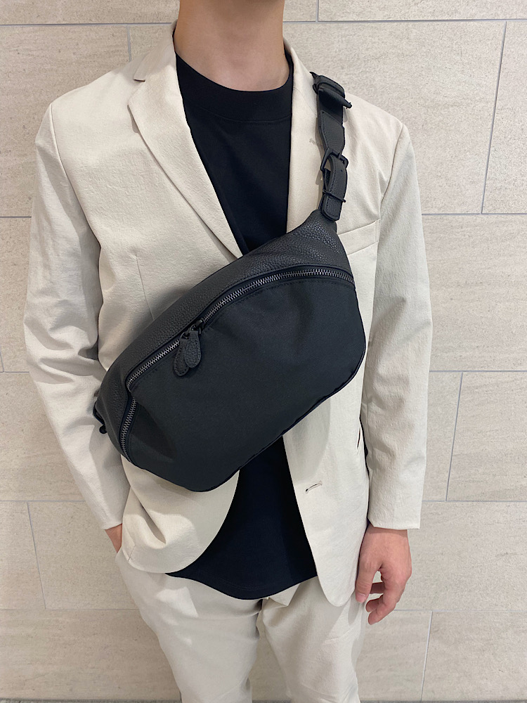 〔ONE SIZE〕SHIPS: シュリンクレザー × ファブリック コンビ ウエスト バッグ (ボディバッグ)