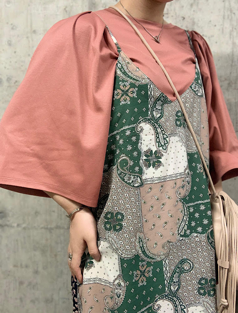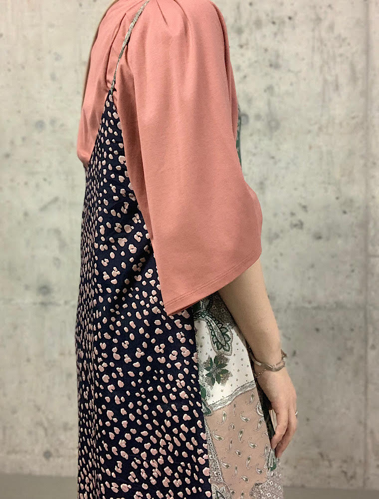 【素材感・着心地】少し光沢感のある素材感。シーズン問わず活躍できるワンピースです。