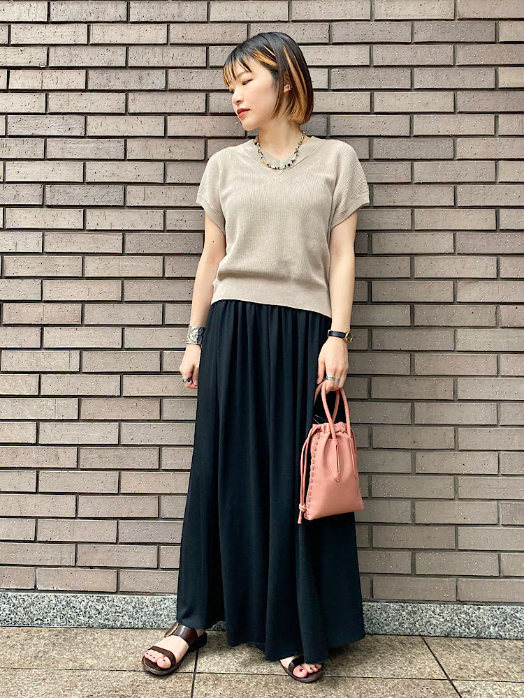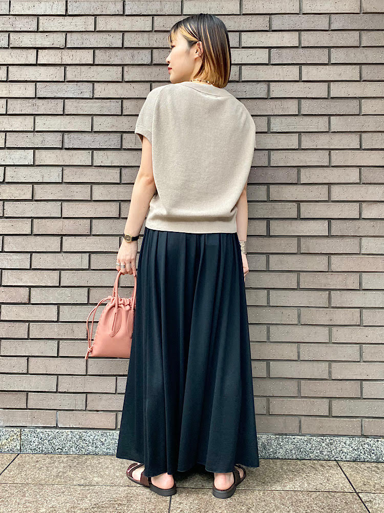 短めの着丈なのでスカートやワイドパンツ合わせでも