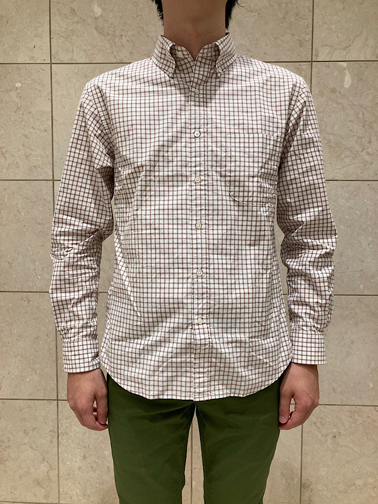 素材感・着心地: 播州織でハリコシある生地感でつくられたボタンダウンシャツ。キレイ目からカジュアルまで様々な合わせを楽しめるアイテム。