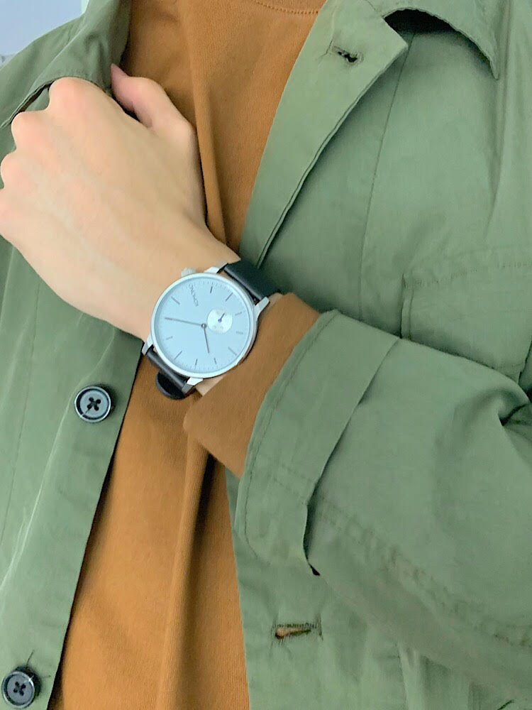 素材感/着心地:ややハリ感のある生地なので、きれいめコーデにもおすすめです!別注の青ワニもワンポイントでかわいいです!