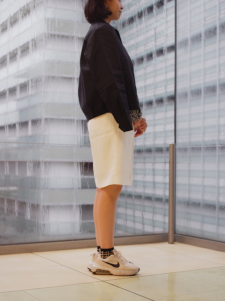 麻混で涼しく着ていただけます。丈が長めなので、ショートパンツでも膝が出にくく、履きやすいです。