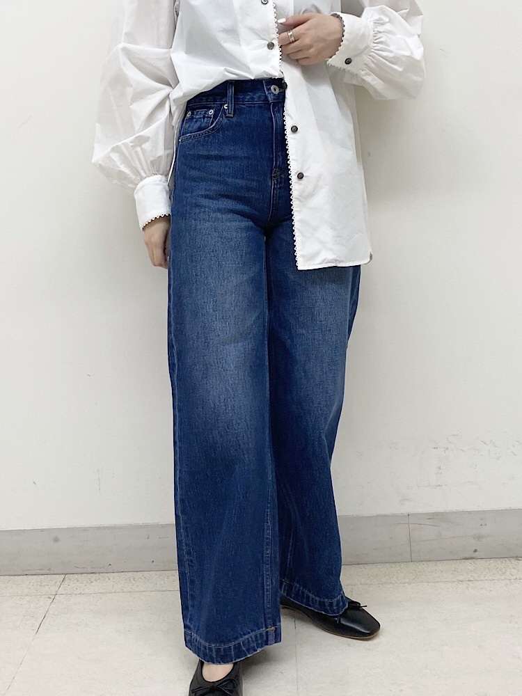 サイズ感:153cmでSS着用。丈感ぴったり。ワイドすぎない。